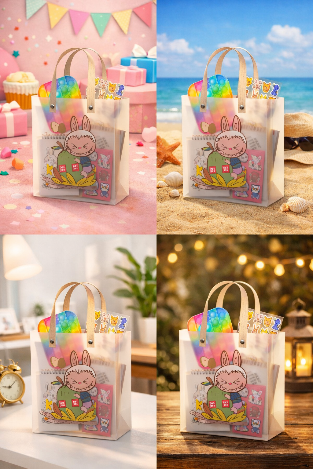Pack your gifts in style with this Cute Cartoon Gift Bag featuring fun character prints and easy-carry handles.